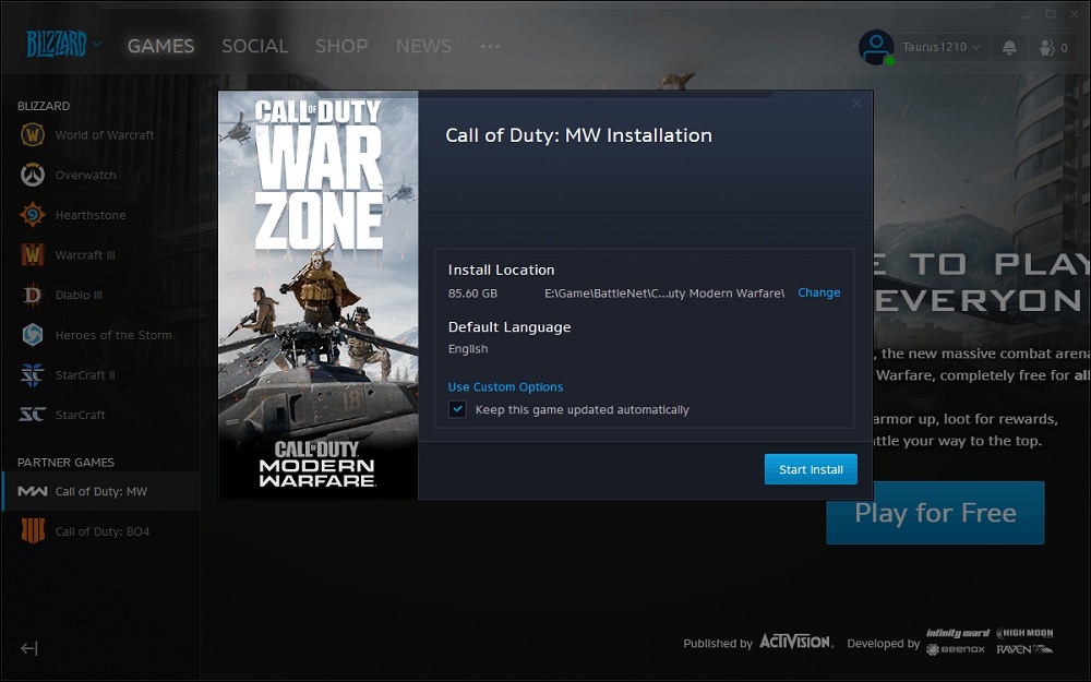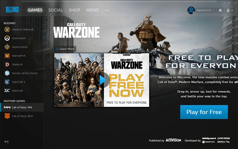 《实名召唤》选择“PARTNER GAMES”中的 “Call of Duty:MW”